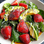 This vibrant Strawberry Avocado Spinach Salad with Poppyseed Dressing bursts with fresh flavors and delightful textures, making it an ideal choice for summer g…