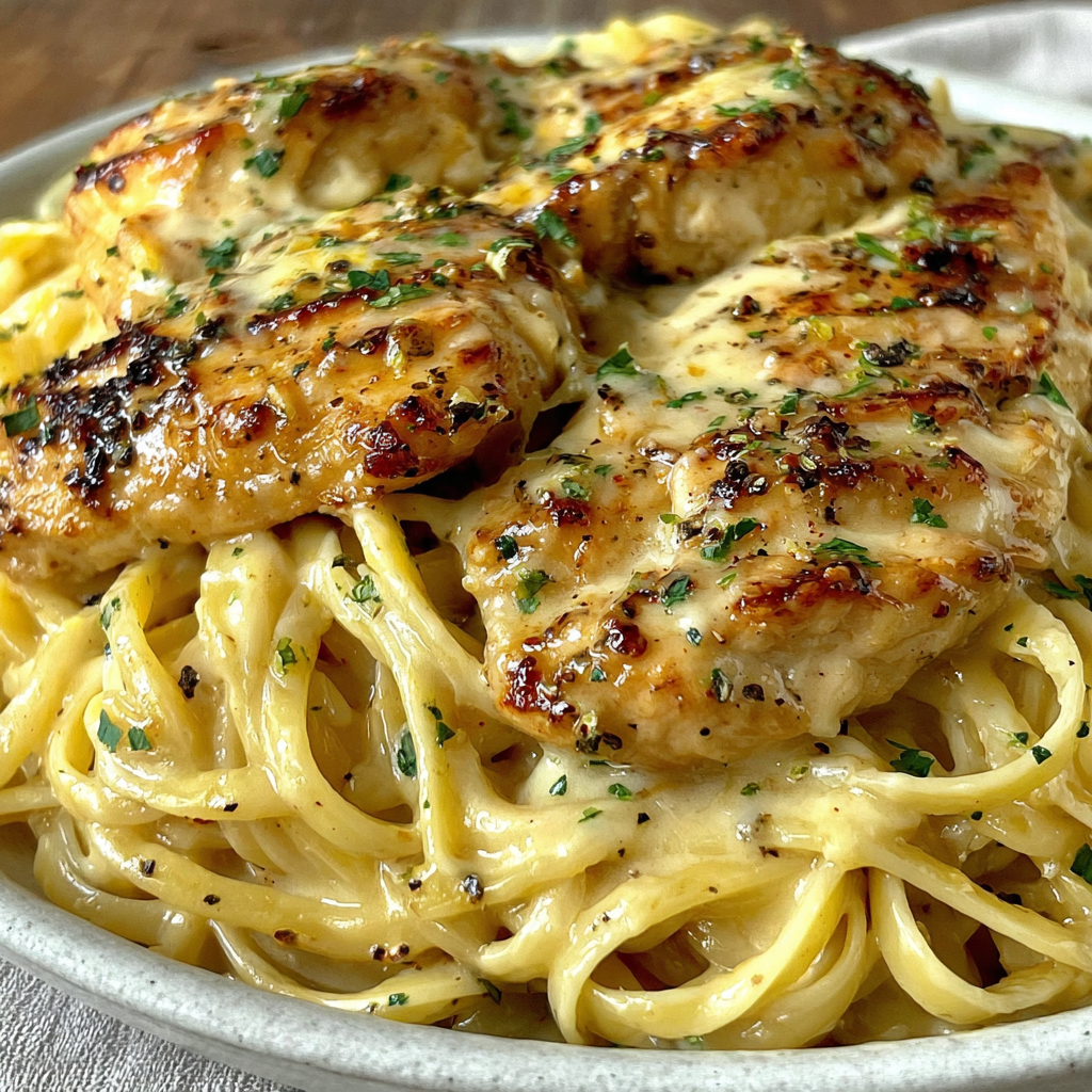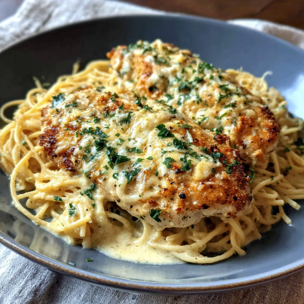 Spicy Cheesy Garlic Butter Chicken with Linguine