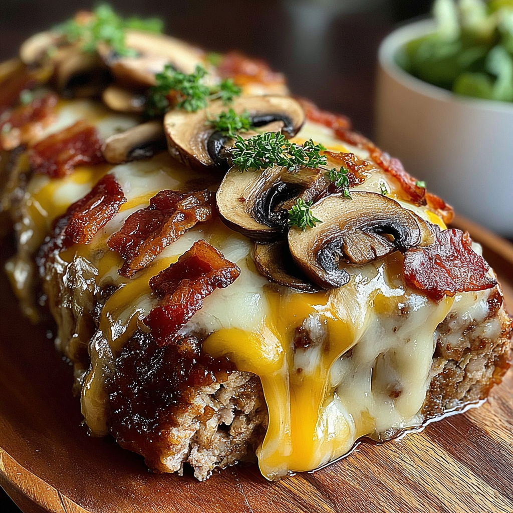 Savory Bacon Mushroom Swiss Cheese Meatloaf Delight