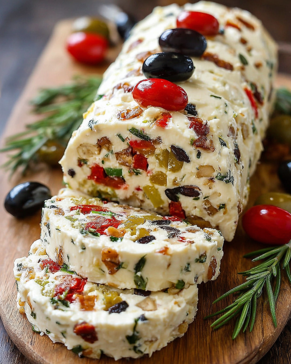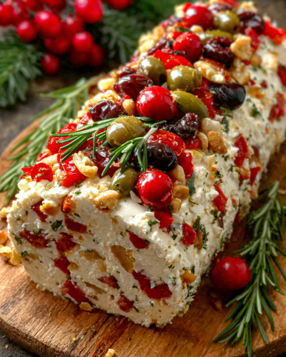 Festive Holiday Antipasto Cream Cheese Log Recipe