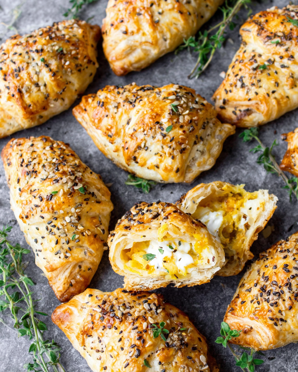 Cheesy Vegan Potato & Onion Puff Pastries – Savory Thanksgiving Appetizer made approachable with clear...