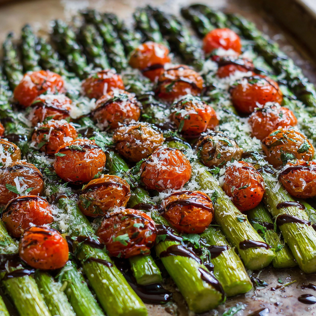 Parmesan Roasted Asparagus with Tomatoes and Balsamic